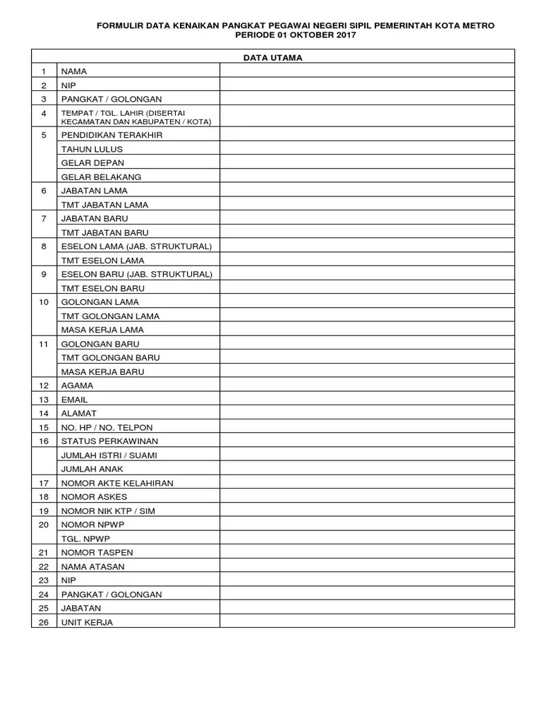 Contoh laboran psikolog biomekanik masseur gizi kabupatenkota. 19720115 199802 1 003 3. Pada kesempatan kali ini quoracoid akan membagikan artikel contoh tentang biodata diri meliputi pengertian biodata cara membuat biodata diri struktur pembuatan biodata diri contoh biodata diri yang baik dan benar. Contoh database kepegawaian pns atau asn. Dalam pendaftaran seleksi cpns 2018 diharuskan para calon pelamar melampirkan surat lamaran seleksi cpns 2018.