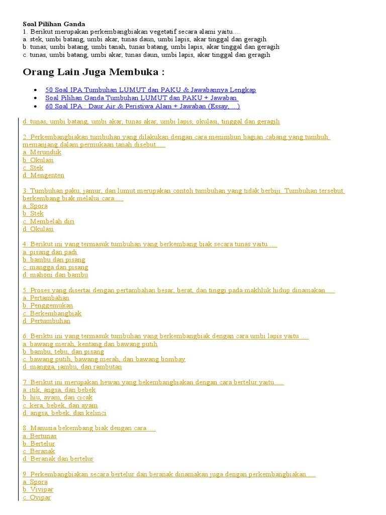 10 contoh soal pilihan ganda dan jawaban tentang reproduksi soal sridianti com.