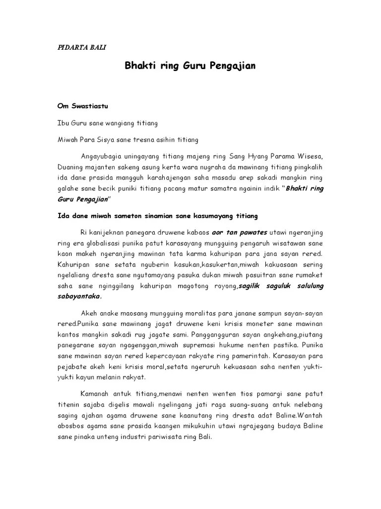 Contoh Pidarta / Contoh Contoh Pidato Bahasa Bali - Download file word contoh conto pidato pidarta bahasa basa bali.. Contoh pidarta bahasa bali singkat · melarapan antuk manah sane suci tur astiti bakti majeng ring ida sang hyang widhi wasa titiang sareng . Hari pendidikan nasional om swastyastu bapak kepala sekolah sane baktinin titiang, . Berikut contoh naskah khutbah idul fitri 2021 di . Contoh pidarta bahasa bali ananta cute766. Pidato bahasa bali pidato merupakan kegiatan yang memiliki tujuan tertentu yakni menyampaikan ide atau nasehat kepada siapa saja yang .